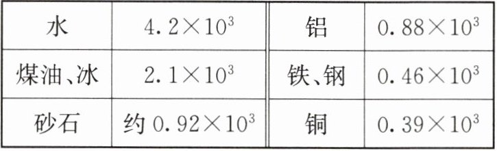 |水|$4.2×10^{3}$|铝|$0.88×10^{3}$|