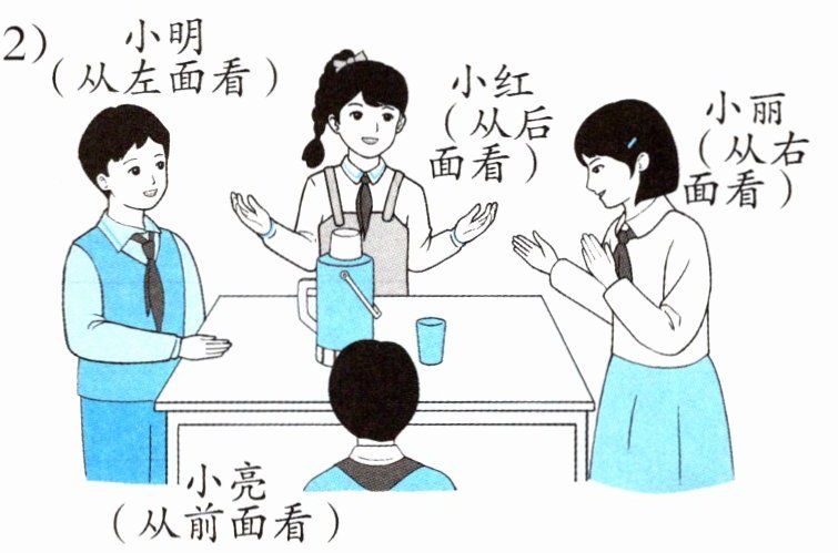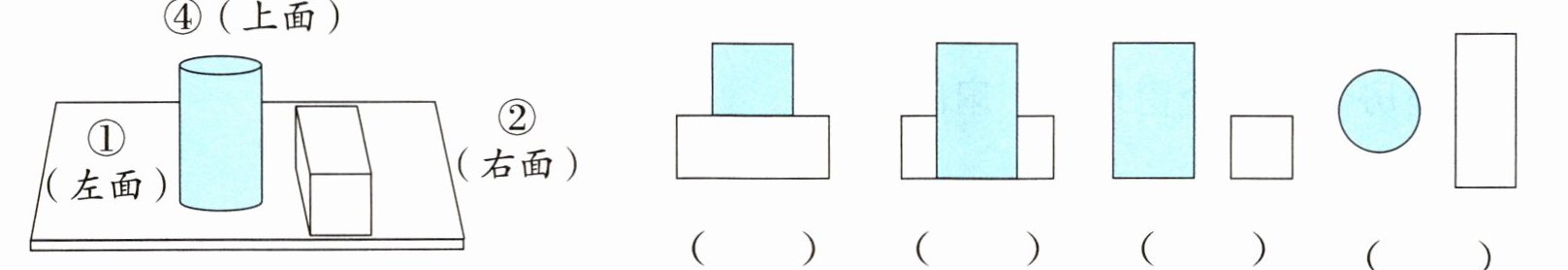 3. 下面右边的四幅图分别是从哪个位置看到的?把相应的序号填在( )里。