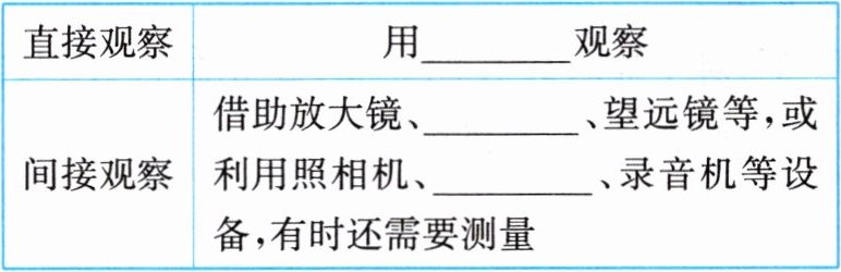|间接观察(借助工具、设备)|观察|要按照一定的顺序进行,并做好记录|