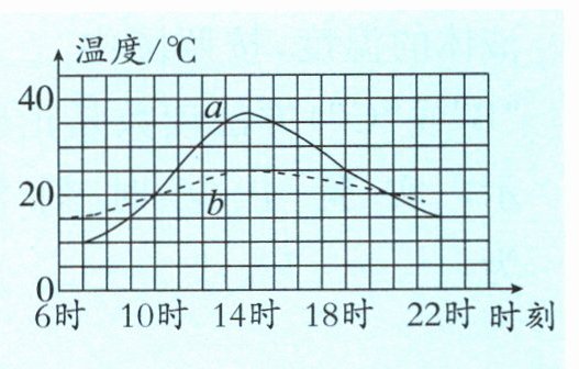 某沿海城市和某内陆城市同一天气温的变化曲线如图所示,其中内陆城市对应的曲线是a,沿海城市对应的曲线是b。为什么沿海城市比内陆城市的昼夜温差小?