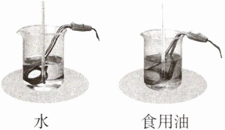 如图所示,利用相同的电加热器加热质量相等的水和食用油,使它们升高相同的温度。