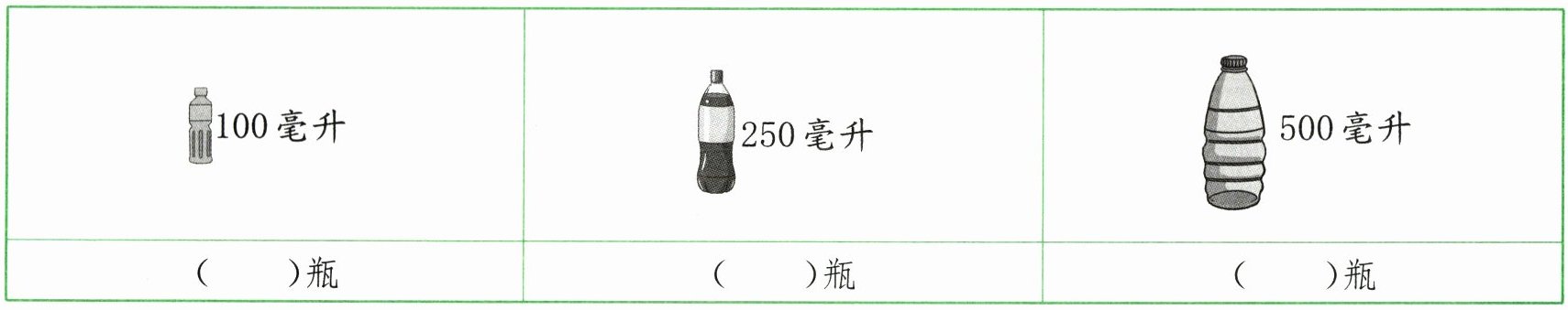 5. 新素养 量感 下面是超市中的三种饮料,每种饮料各多少瓶正好是1升?填在括号里。
