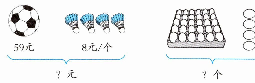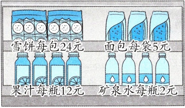 (2)2×3+24=30(元) 他买了3瓶矿泉水和1包雪饼。