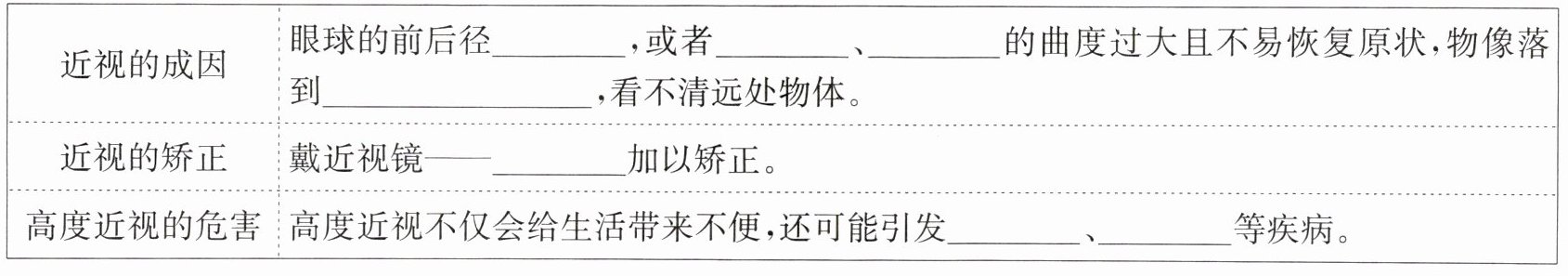 ,这样看到的是一个模糊不清的物像。这种看不清远处物体的眼,叫做近视眼。近视眼可以通过配戴凹透镜