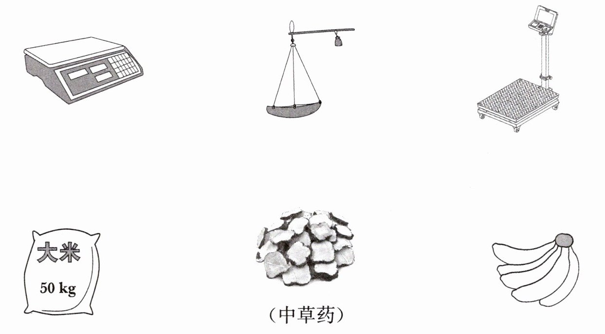 3. 如何称人的体重?在合适的称重工具下面画√。