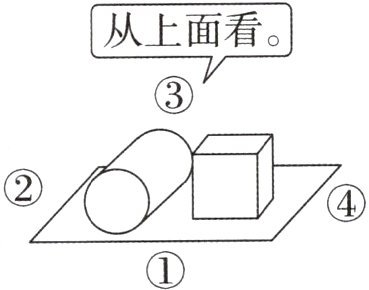 4. 站在不同的位置观察桌上的物体,能看到哪一张图?请填序号。