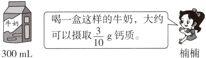 6. 楠楠每天早晚各喝一盒同样的牛奶,她每周通过喝牛奶一共可以摄取(