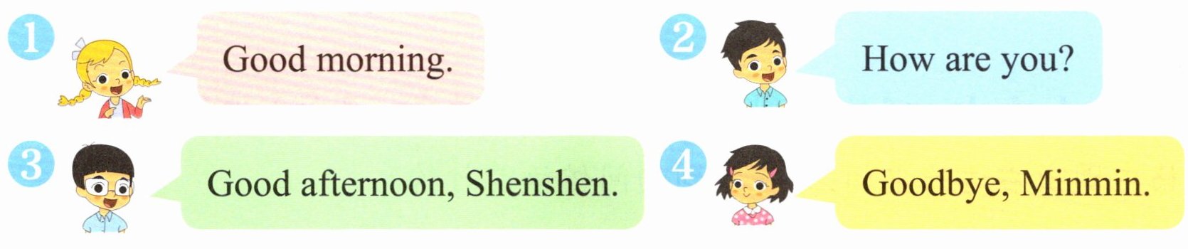 1. Good morning. 2. I'm fine. Thank you. 3. Good afternoon. 4. Goodbye.