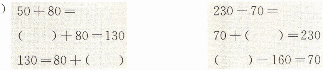(2) 一个加数$ = (\quad) - $另一个加数被减数 - 减数$ = (\quad) $减数 = 被减数$ - (\quad)$