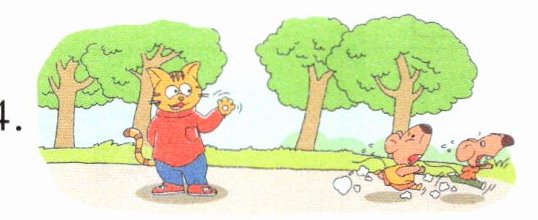 二、Liu Tao 今天是个小小裁判员。听录音,判断下列图片与所听内容是否相符,相符的画"√",不相符的画"×"。