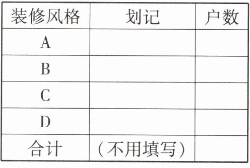 【整理、描述数据】调查员根据数据设计了下面的家装风格统计表.