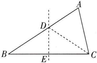 8 天星原创教材通过折纸的方式证明了“大边对大角”.“飞翔”数学兴趣小组的学生发现“大角对大边”也可利用线段的对称轴进行类似的证明.如图,在$\triangle ABC$中,$∠ACB>∠B$,为了证明$AB>AC$,作BC的垂直平分线,交AB于点D,交BC于点E,连接DC.请你帮助“飞翔”数学兴趣小组的学生完成证明过程.