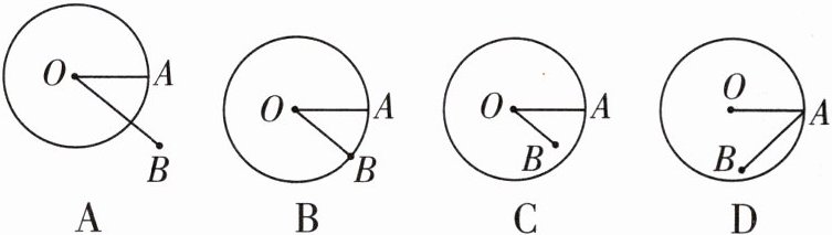 2 [2024 承德期末]已知⊙O 的半径 OA 的长为 2,若 OB = 3,则得到的图形可能是 ( )