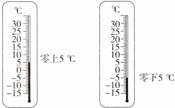 问题1:如果正数表示零上的温度数,那么请用正数和负数分别表示图中温度计所示的温度。