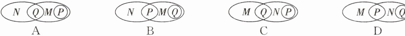 9. 若$M$表示直角三角形,$N$表示等腰三角形,$P$表示等边三角形,$Q$表示等腰直角三角形,则下列四幅图中,能正确表示它们之间关系的是 (