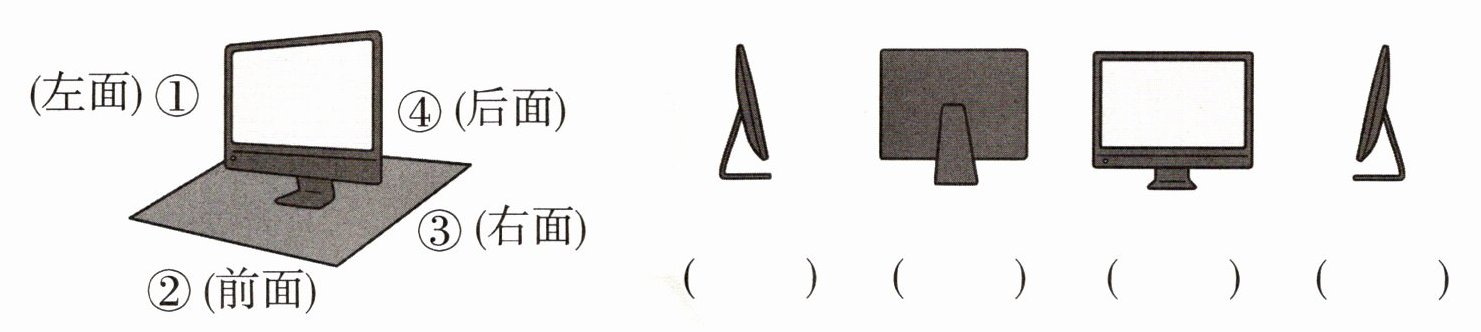 2. 右边的四幅图分别是从哪个位置看到的?把相应的序号填在括号里。