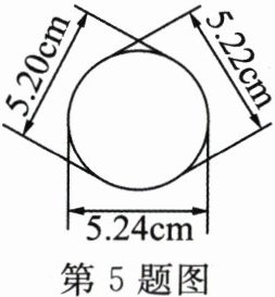 5. 小金在制作一套榫卯结构的家用桌凳时,为得到圆柱形桌腿直径,如图进行了测量,则该桌腿的直径是 ………………… ( )