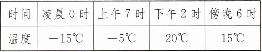 |温度|$-15^{\circ}C$|$-5^{\circ}C$|$20^{\circ}C$|$15^{\circ}C$|