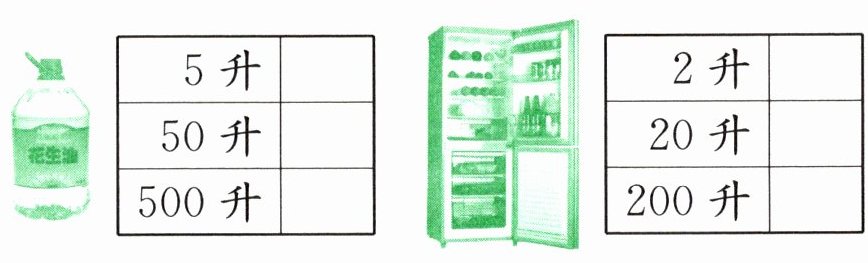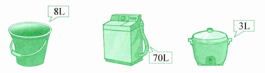 3. 下面容器的容量大约各有多少升?在你认为合适的答案后面画“√”。