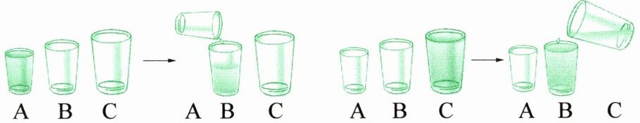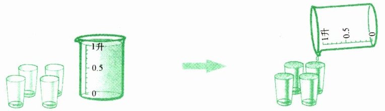 4. 根据 1 升的量器,估计下面的容器里能盛多少升水。