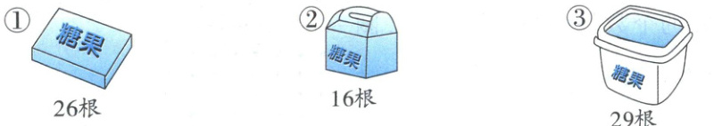 3. 二(3)班荣获校运会接力赛冠军,王老师要奖励全班45名同学每人1根棒棒糖,商店的棒棒糖有以下三种包装,(