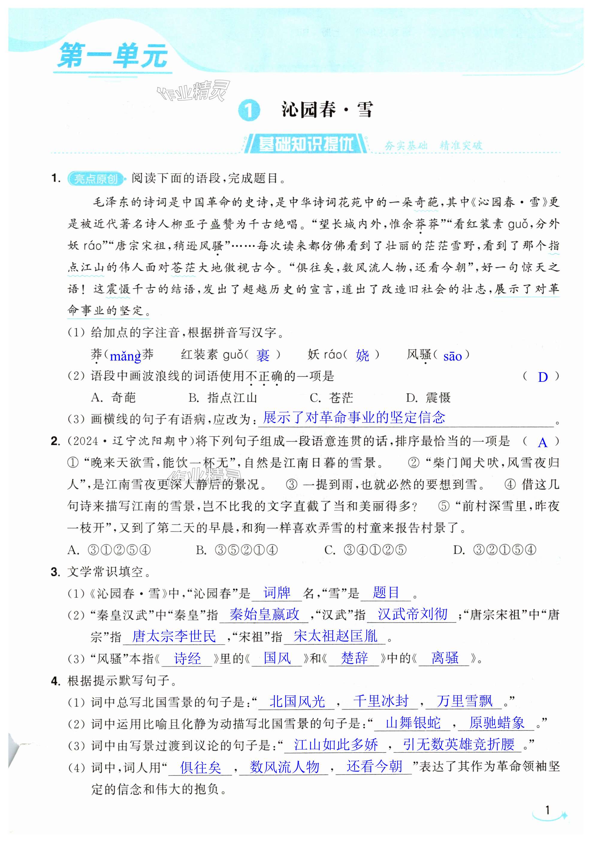 注:目前有些书本章节名称可能整理的还不是很完善,但都是按照顺序排列的,请同学们按照顺序仔细查找。练习册 2025年亮点给力提优课时作业本九年级语文上册人教版 答案主要是用来给同学们做完题方便对答案用的,请勿直接抄袭。
