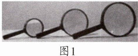 (1)小科用图1中三个材料相同的放大镜(三个镜片的直径分别是2厘米、3厘米、4厘米)观察同一个物体,发现放大的倍数是相同的,这说明( )。