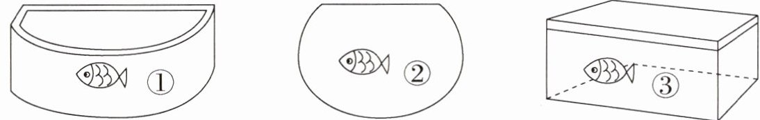 (5)菜场水产摊把3条鱼暂养在下边3个不同形状的鱼缸中。小明透过鱼缸壁看到这3条鱼看起来几乎一样大,其中最大的一条最有可能是( )。