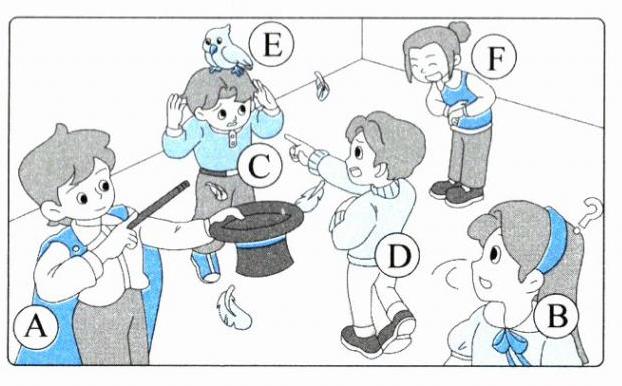五 听两遍录音,为图中人物或动物匹配名字。(9分)