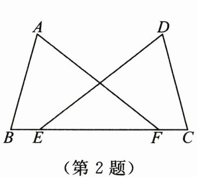 2. 新素养 几何直观 (2023·四川凉山)如图,点E,F在线段BC上,$BE= CF,∠B= ∠C$,添加下列条件中的一个,不能证明$△ABF\cong △DCE$的是 (