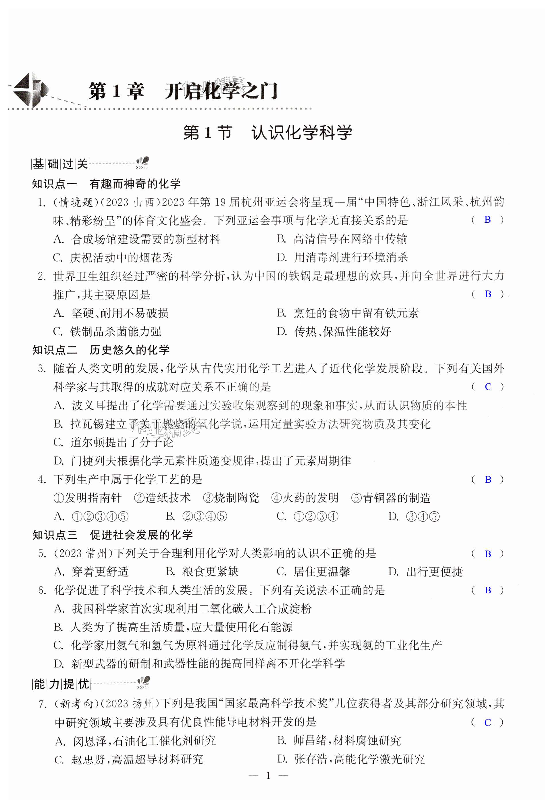 注:目前有些书本章节名称可能整理的还不是很完善,但都是按照顺序排列的,请同学们按照顺序仔细查找。练习册 2024年南通小题课时提优作业本九年级化学上册沪教版 答案主要是用来给同学们做完题方便对答案用的,请勿直接抄袭。