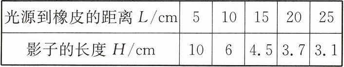 |光源到橡皮的距离L/cm|5|10|15|20|25|