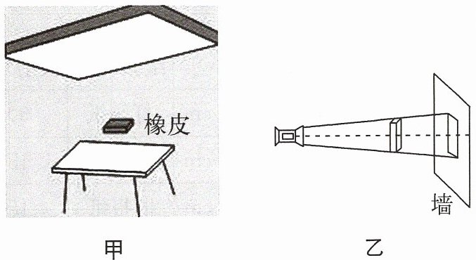 (1)如图甲所示,甜甜把一块橡皮放在客厅的平板灯下,发现橡皮的影子十分暗淡,无法开展探究。这是因为平板灯的发光面很大,灯光从(