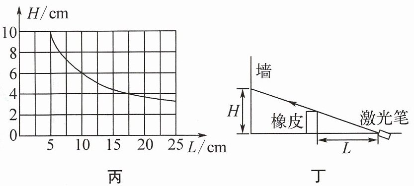 )。(4)如图丙所示,甜甜依据表中数据,绘制了影长H随手电筒到橡皮的距离L变化的图像。由图像可知,当手电筒到橡皮的距离L= 17.5cm时,影长H大约是(