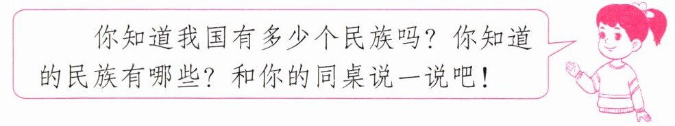 你知道我国有多少个民族吗?你知道的民族有哪些?和你的同桌说一说吧!