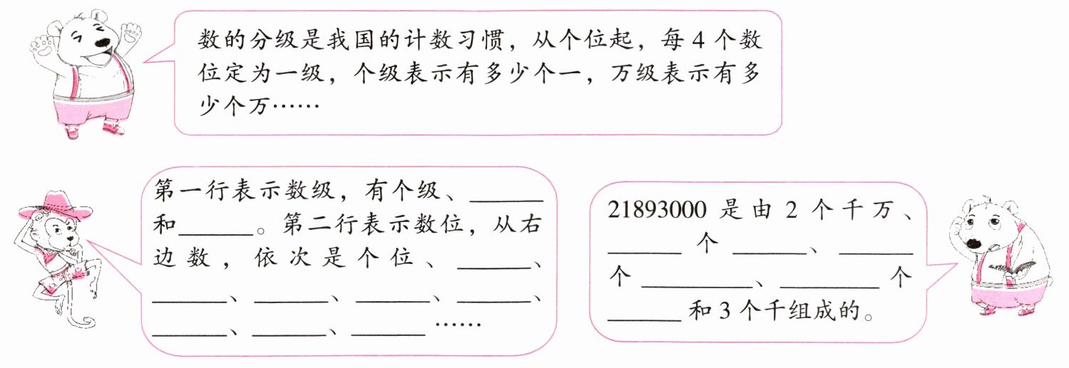 数的分级是我国的计数习惯,从个位起,每4个数位定为一级,个级表示有多少个一,万级表示有多少个万……