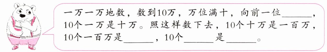 ,10个一万是十万。照这样数下去,10个十万是一百万,10个一百万是一千万