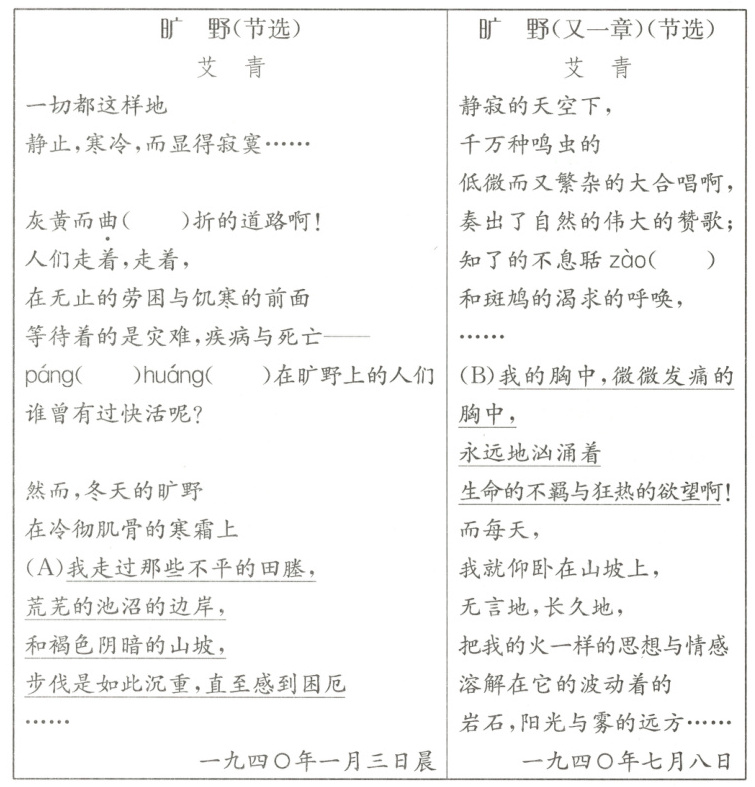 。3.【情感共鸣】两首诗歌虽同为《旷野》,但情感基调有所不同,请结合诗歌的意象和意境,分析其不同之处。(3分)