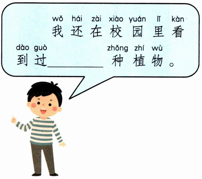 我还在校园里看到过3种植物。(答案不唯一,根据实际情况填写)