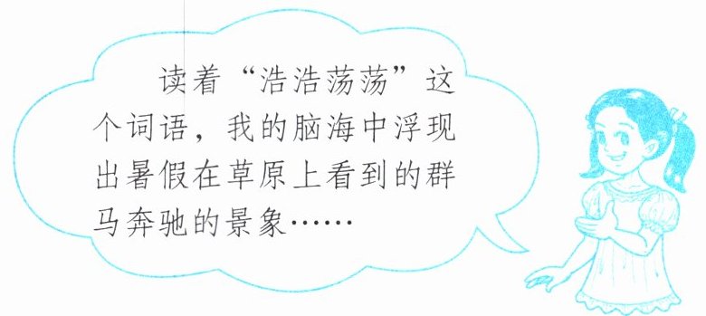 读着“浩浩荡荡”这个词语,我的脑海中浮现出暑假在草原上看到的群马奔驰的景象……