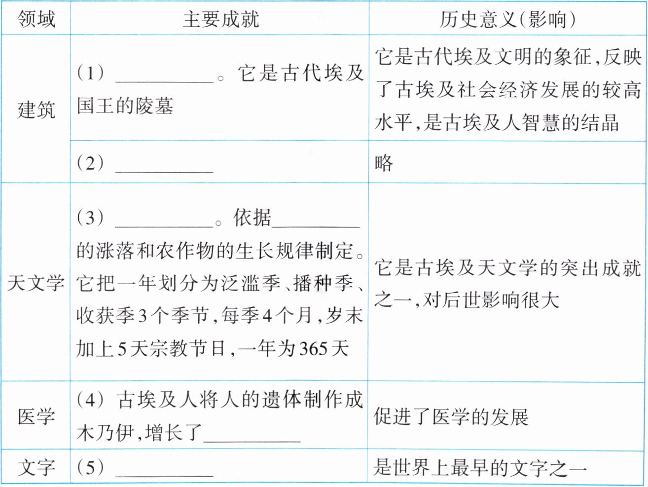 |它是古代埃及文明的象征,反映了古埃及社会经济发展的较高水平,是古埃及人智慧的结晶略||天文学|(3)