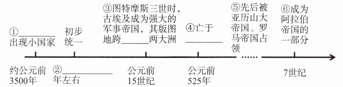 1. 梳理古代埃及的历史发展线索,填写下列时间轴。