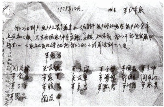 2. 右图是1978年安徽凤阳小岗村18位村民尝试“大包干”做法而签下的“契约”。这份“契约”见证了( )