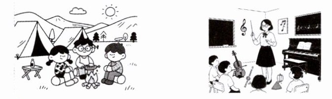 1. visit grandparents 2. climb mountains 3. go camping 4. have music classes