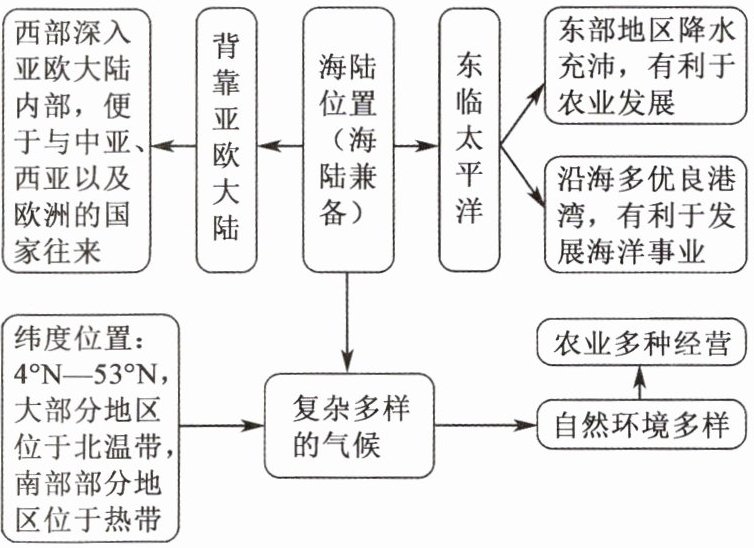答案: 我国地理位置的优越性主要体现在以下方面: