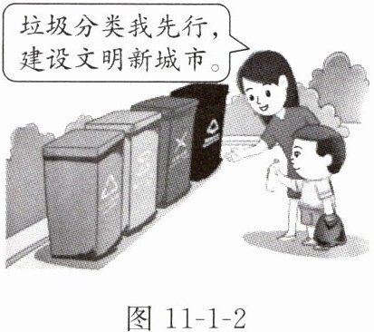 例 1 争创文明城市,开展垃圾分类活动。如下页图$11 - 1 - 2$所示,老师给小南讲解垃圾分类的相关知识。下列各环节中小南对瓶子做功的是(