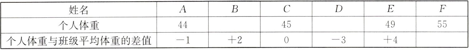 (2)−1+2+0−3+4+10+45×6=282(kg).所以这6名同学体重的和是282kg.