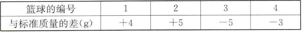 2. 检查四个篮球的质量,把超过标准质量的克数记为正数,不足标准质量的克数记为负数,检查的结果如下表所示,则质量较好的篮球的编号是(