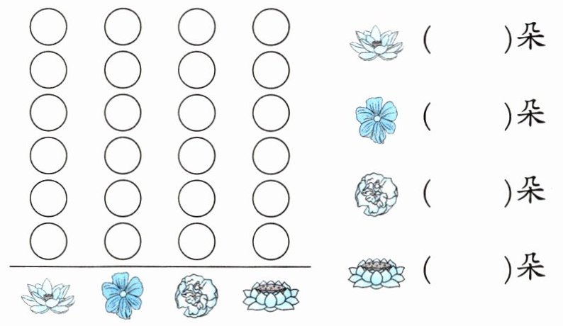 (1)按花朵的种类分一分,再涂一涂、填一填。