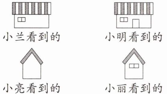5. 有一间房子,小兰、小明、小亮、小丽从不同的角度观察到的情况如下图: